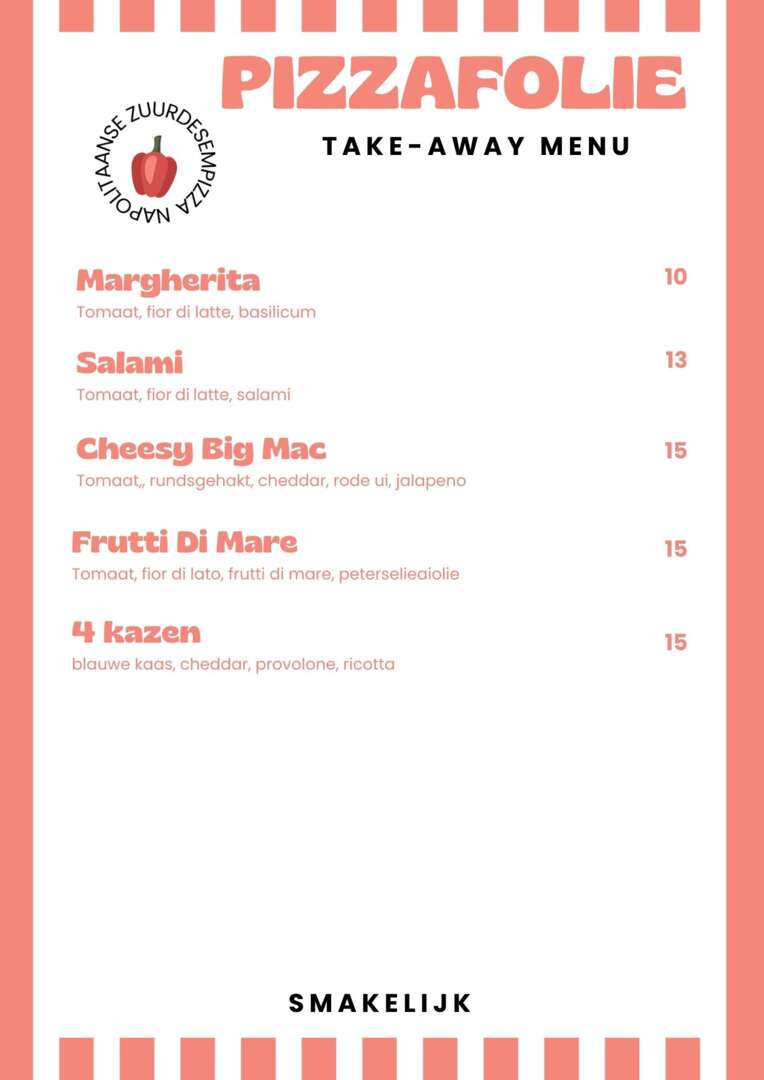 Peter bakt op woensdag 18/03/2026 verse Napolitaanse desempizza in de houtskooloven. Deze worden op voorhand afgebakken. Vervolgens krijg je de pizza zorgvuldig verpakt mee en warm je deze enkele minuten op in een gewone oven.